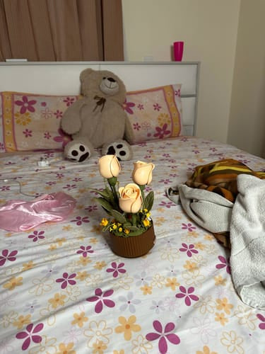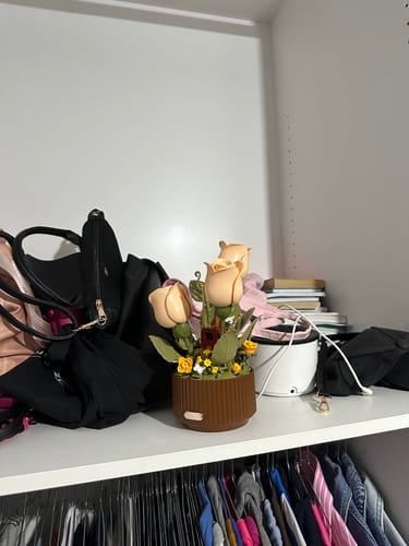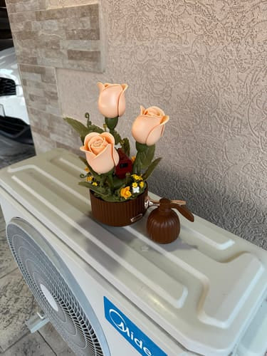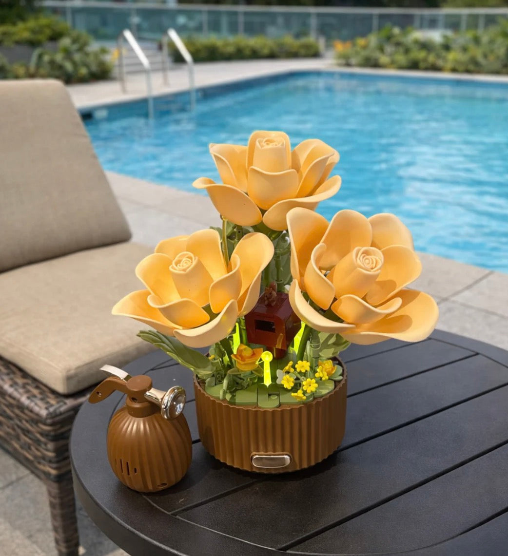 3 Articulated roses, 1 water can, 255 pieces to assemble, 1 charging cable ( Type C ) and 1 user manual.